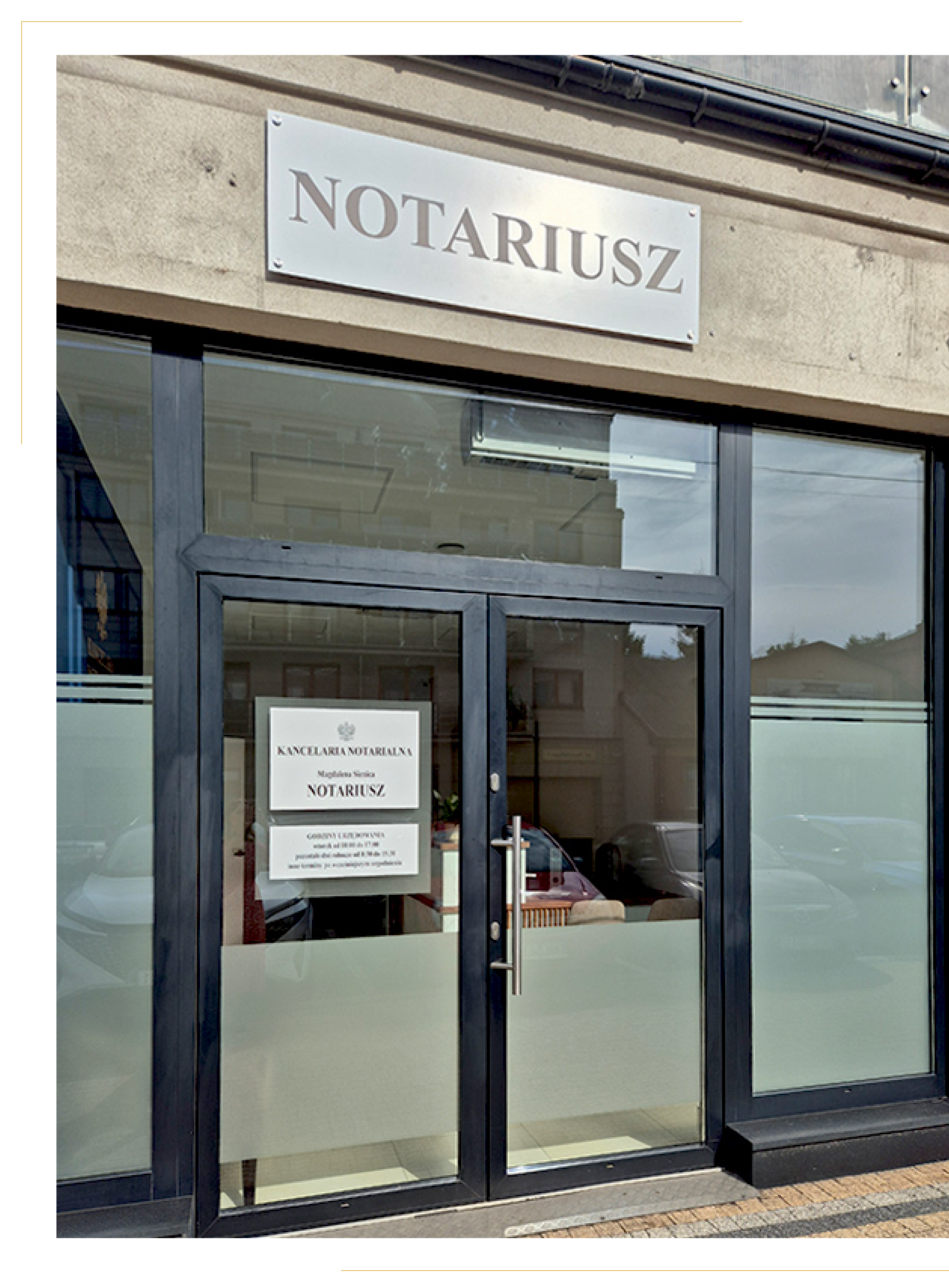 Przedmiotowa strona internetowa nie stanowi ani reklamy ani oferty w rozumieniu obowiązujących przepisów powszechnie obowiązującego prawa. Notariusz Magdalena Sienica otrzymuje od Państwa jako klientów informacje stanowiące dane osobowe i będzie je przetwarzała wyłącznie do celów związanych z realizacją czynności notarialnych podejmowanych na Państwa zlecenie, jak również w ramach wykonywania obowiązków wynikających z odrębnych przepisów związanych z tymi czynnościami. W celu zapoznania się z pełną klauzulą informacyjną dotyczącą przetwarzania danych osobowych proszę kliknąć tutaj.
